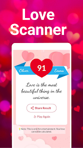 Step7: 📤 Share your results with friends via social media, using the in-app sharing options to extend the lighthearted fun beyond the app. Embrace the carefree spirit of the game and celebrate its uniquely entertaining approach to "love testing."